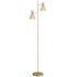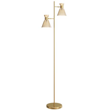 Lampadaire sur pied design H.165cm double tête réglable verre conique métal doré