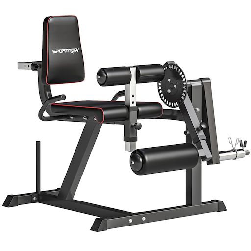 Optimisez votre entraînement des jambes avec la machine d'extension de jambe SPORTNOW, offrant curls, extensions et ponts gluteaux. Adaptée avec 8 réglages de dossier et 6 de coussin, elle supporte jusqu'à 60 kg. Inclut un crochet pour ranger les poids, idéale pour une salle de sport à domicile. Excellente avec SPORTNOW.