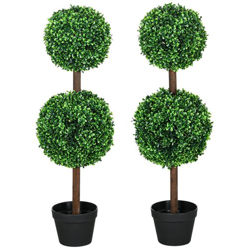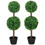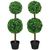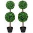 Lot de 2 buis artificiel double boules - cailloux et pot inclus - H.90 cm PE vert