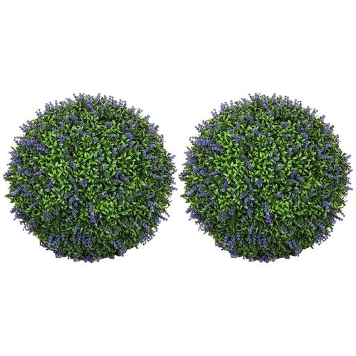 Illuminez vos espaces avec le lot de 2 boules de topiaires artificielles HOMCOM, un mélange de 455 feuilles et 225 fleurs de lavande. Idéales en intérieur et extérieur, ces plantes artificielles colorées ne nécessitent aucun entretien. Profitez de leur beauté durable, chez vous ou au bureau.