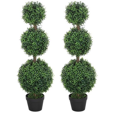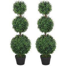 Lot de 2 buis artificiels topiaires en forme de boules x 3 dim. Ø30 x 101H cm avec pots