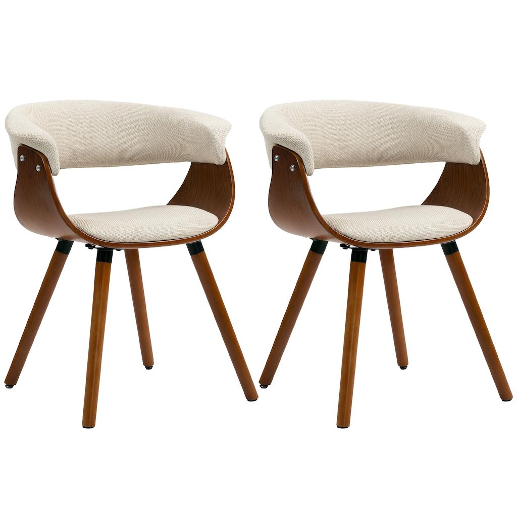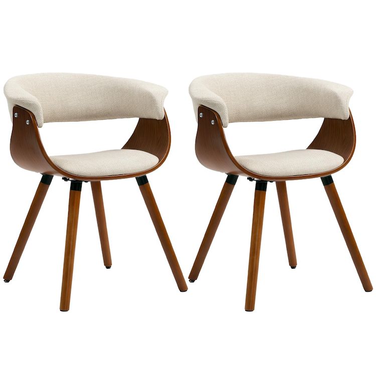 Lot de 2 chaises de salle à manger dossier incurvé effet lin bois beige