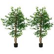 Lot de 2 plantes artificielles arbres ficus H.1,50 m tronc branches liane lichen feuilles grand réalisme pot inclus