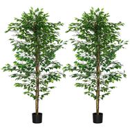 Lot de 2 plantes artificielles arbres ficus H.1,80 m tronc branches liane lichen feuilles grand réalisme pot inclus