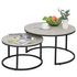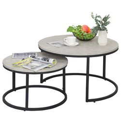 Lot de 2 tables basses rondes gigogne empilables plateau MDF gris et pieds en métal noir