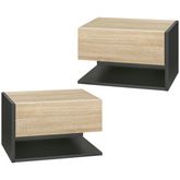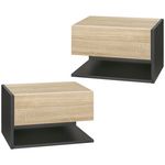 Lot de 2 tables de chevet murales - lot de 2 tables de nuit - tiroir coulissant, étagère - aspect chêne clair noir