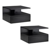 Lot de 2 tables de chevet murales - lot de 2 tables de nuit - tiroir coulissant, niche et plateau - panneau particules noir