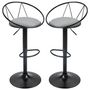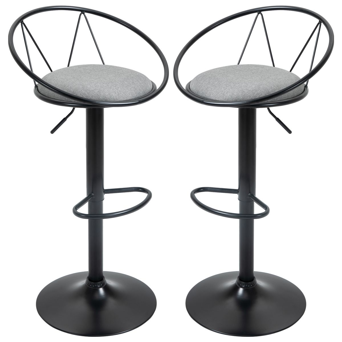 Lot de 2 tabourets de bar design néo-rétro réglable pivotant avec repose-pied métal noir lin gris