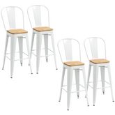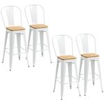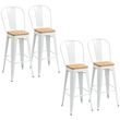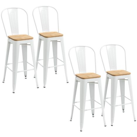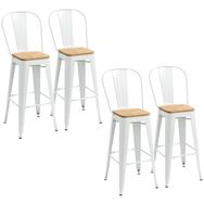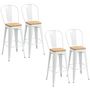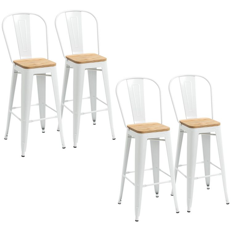 Lot de 4 tabourets de bar industriel avec dossier repose-pied hauteur assise 76 cm acier blanc bois d'orme