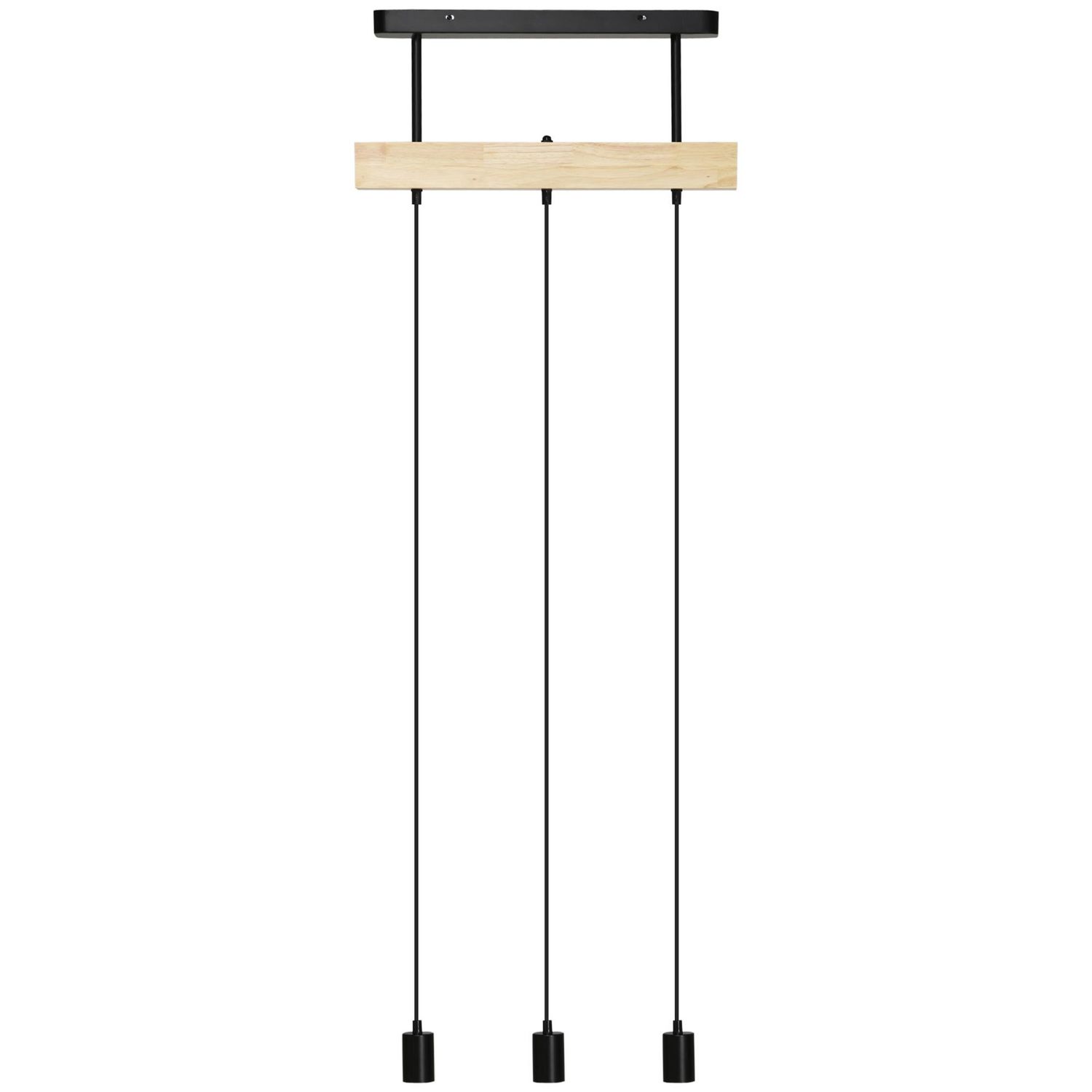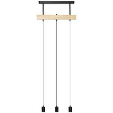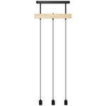 Lustre suspension style industriel 3 lampes 40 W max. hauteur réglable dim. 50L x 8l x 33H cm métal noir bois hévéa