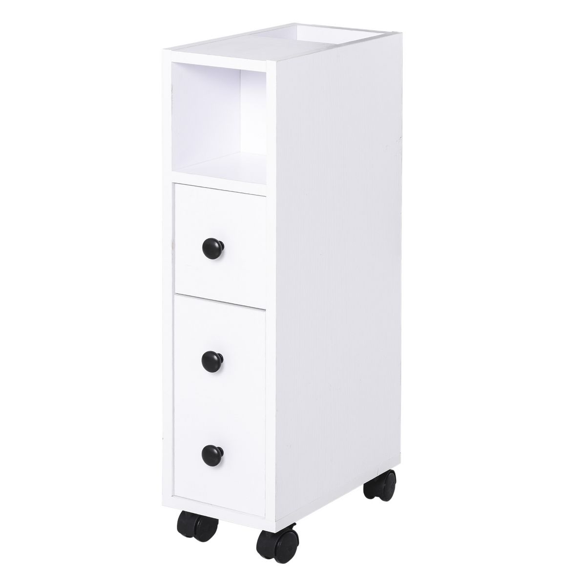 Meuble bas colonne rangement salle de bain à roulettes blanc dim. 18L x 30l x 68,5H cm