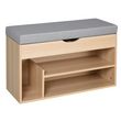 Meuble chaussures banc à chaussures 2 niveaux rangement, niche + coffre intégré avec coussin beige gris