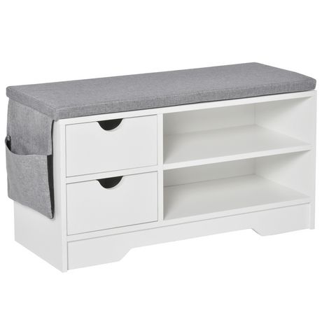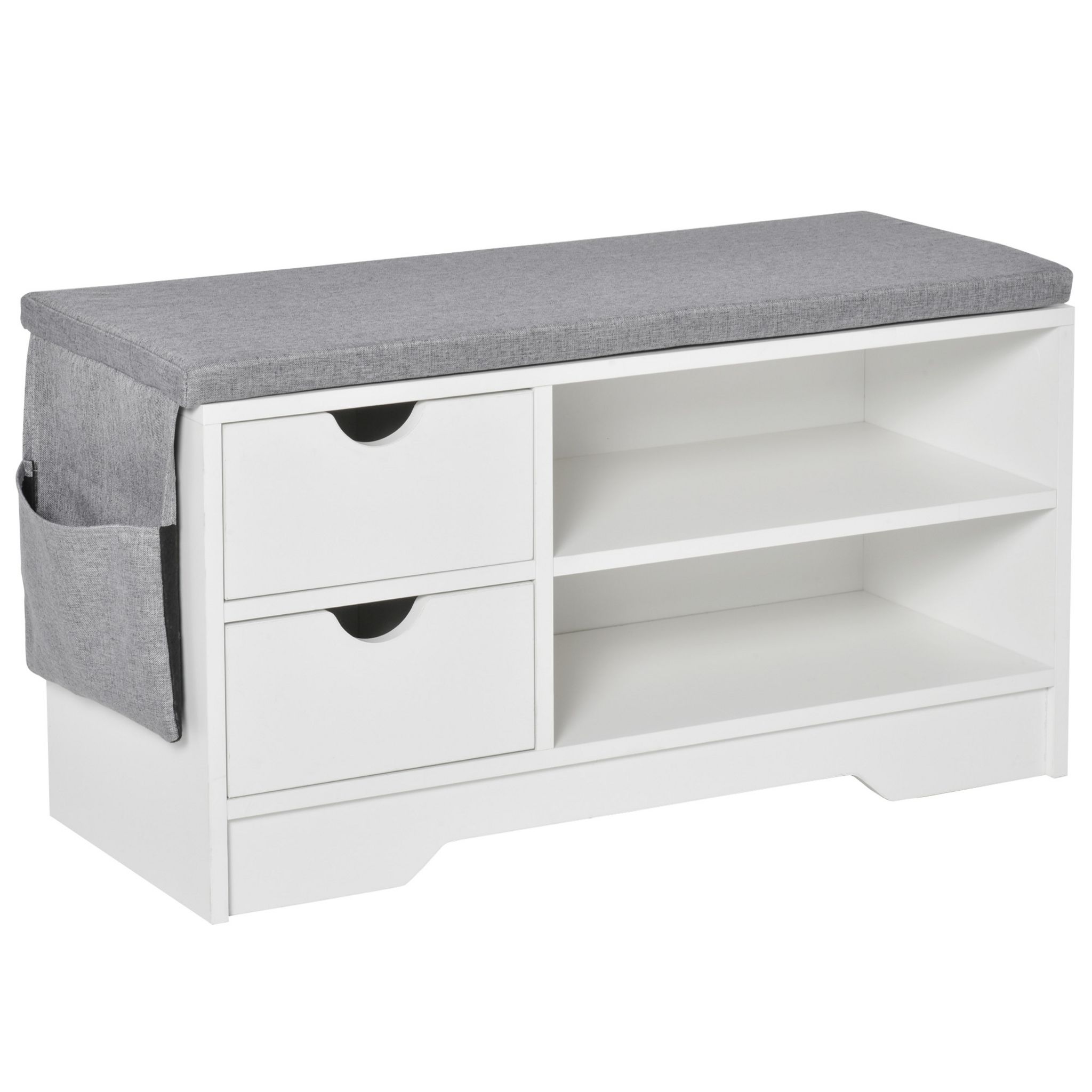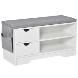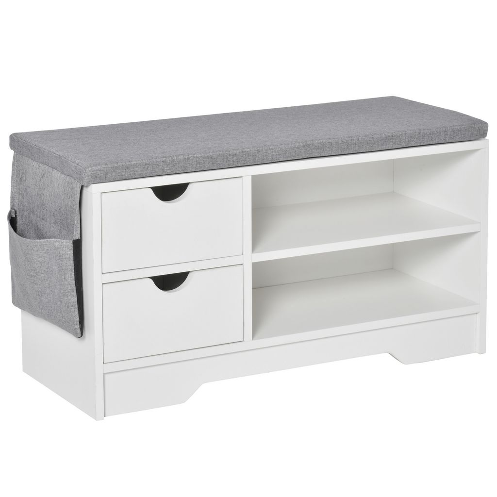 Meuble chaussures et banc à chaussures avec coussin gris 2 étagères et 2 tiroirs MDF 80,5 x 30,5 x 43,5 cm gris et blanc
