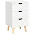 Meuble de rangement chiffonnier 3 tiroirs design scandinave piètement effilé incliné bois pin panneaux blanc