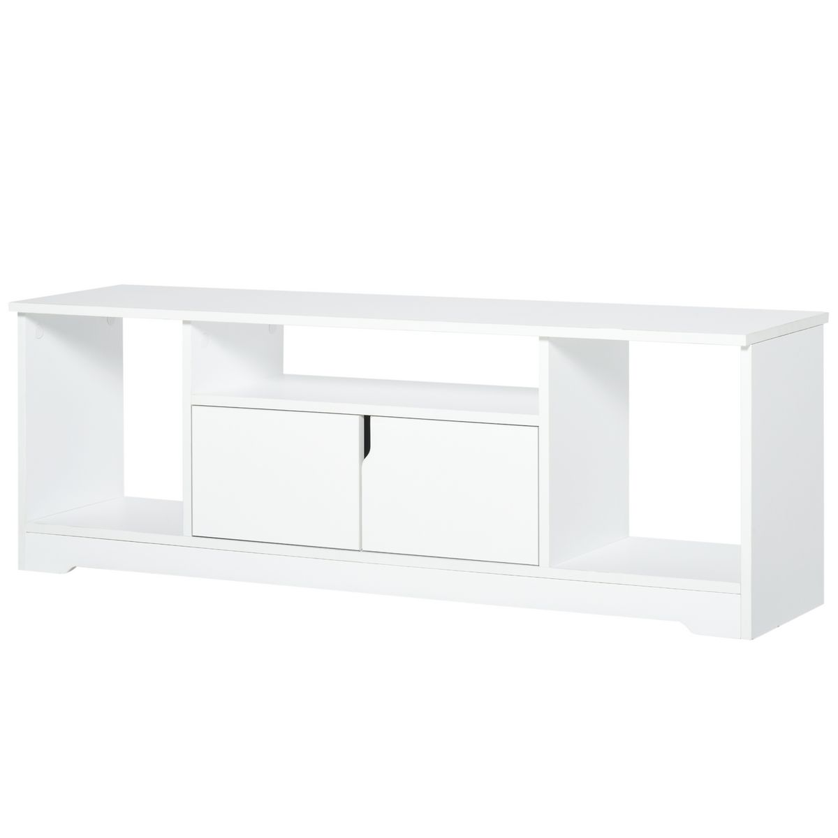 Meuble TV banc TV design contemporain - 3 niches, placard double porte - dim. 120L x 30l x 41H cm - panneaux particules blanc