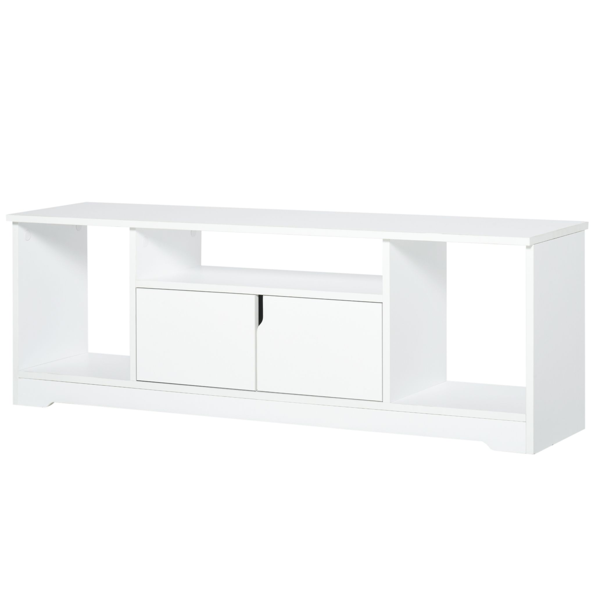 Ce joli meuble TV compact et moderne blanc uni s'intégrera parfaitement à votre intérieur. Idéal pour installation dans votre salon, chambre ou salle de jeu, ce meuble TV vous permettra de ranger tout votre équipement vidéo et audio. N'hésitez plus et optez pour ce meuble à la fois design et fonctio