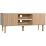 Meuble TV banc TV design Urban Craft - 2 portes coulissantes, 2 niches - piètement cylindrique - panneaux particules aspect bois clair