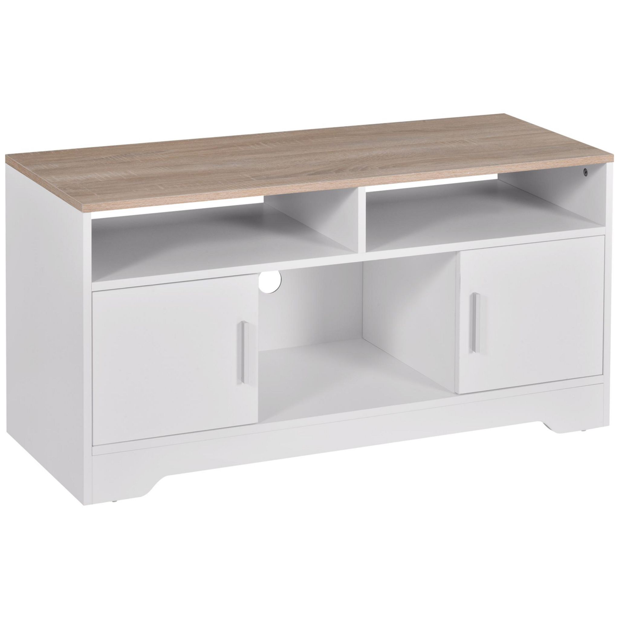 Meuble TV Banc TV en Bois Grand Espace de Rangement avec 2 Compartiments Ouverts 2 Armoires à Porte Une Armoire Ouverte 105 x 40 x 52 cm Blanc