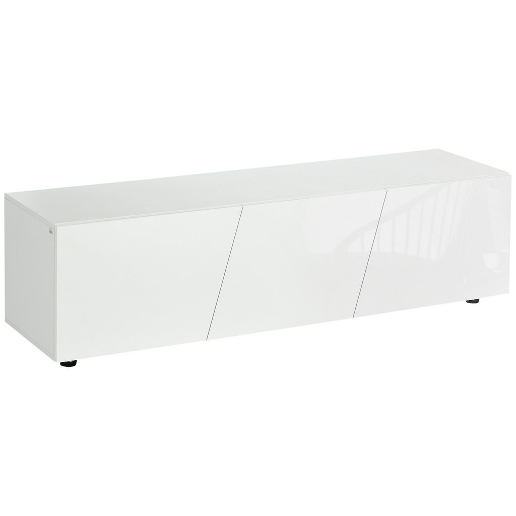Meuble TV Banc TV style contemporain 3 portes abattantes panneaux blanc laqué