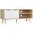 Meuble TV bas sur pied style scandinave 2 portes 2 niches piètement effilé incliné bois panneaux blanc aspect bois