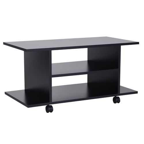 Meuble tv bas table basse a roulettes en panneaux de particules noir