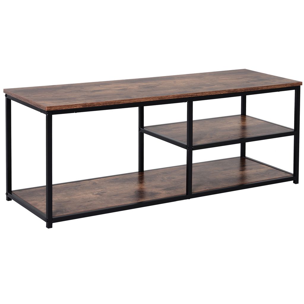 Meuble TV design industriel dim. 120L x 40l x 45H cm grand plateau 2 étagères panneaux particules coloris boisé métal noir