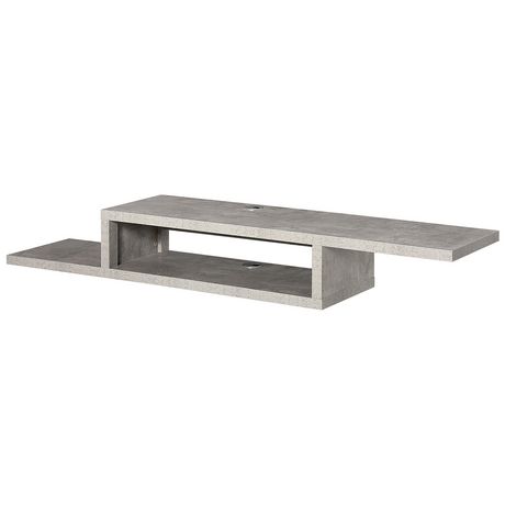Meuble TV mural flottant design - étagère murale flottante - niche, passe-fils - panneaux particules effet béton ciré