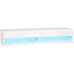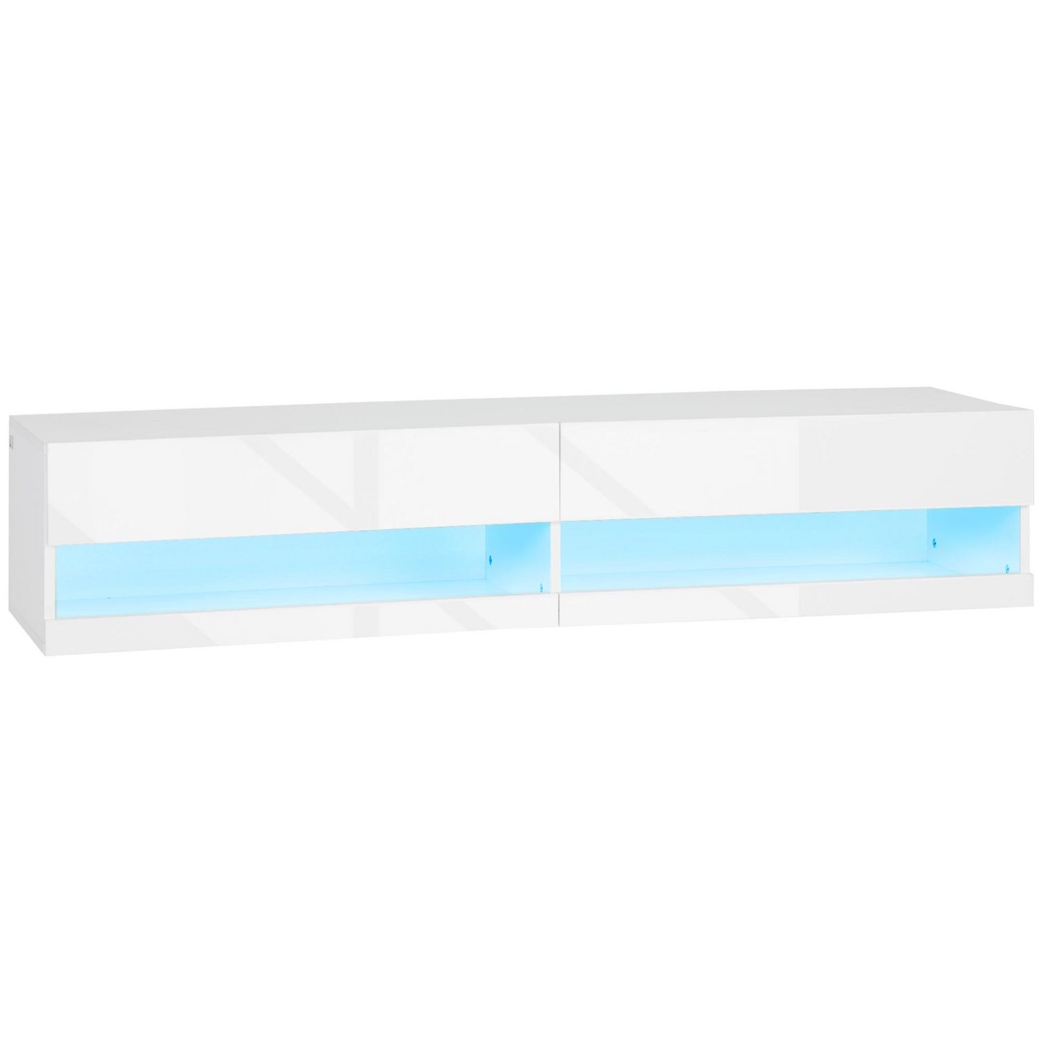 Ajoutez une touche supplémentaire de modernité et style à votre intérieur avec ce superbe meuble TV mural blanc laqué avec éclairage LED. Equipé de deux grands espaces de rangement avec portes abattantes et deux passe-câbles, ce meuble TV vous permettra d'installer tout votre matériel audio et vidéo