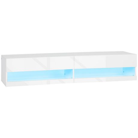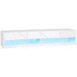 Meuble TV mural LED - banc TV flottant - 2 portes battantes - dim. 150L x 40l x 30H cm - blanc laqué