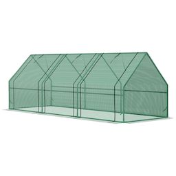 Mini serre de jardin 270L x 90l x 90H cm acier PE haute densité 140 g/m² anti-UV 3 fenêtres avec zip enroulables vert