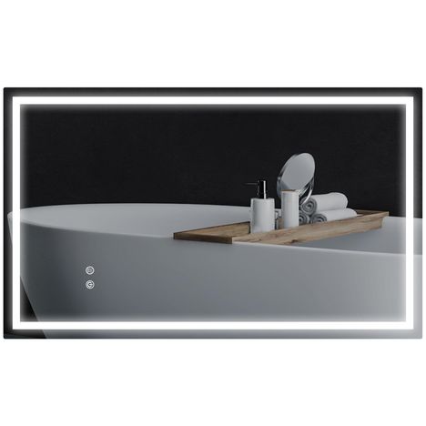 Miroir LED mural de salle de bain - 100L x 60H cm - luminosité réglable 3 couleurs - interrupteur tactile - système antibué