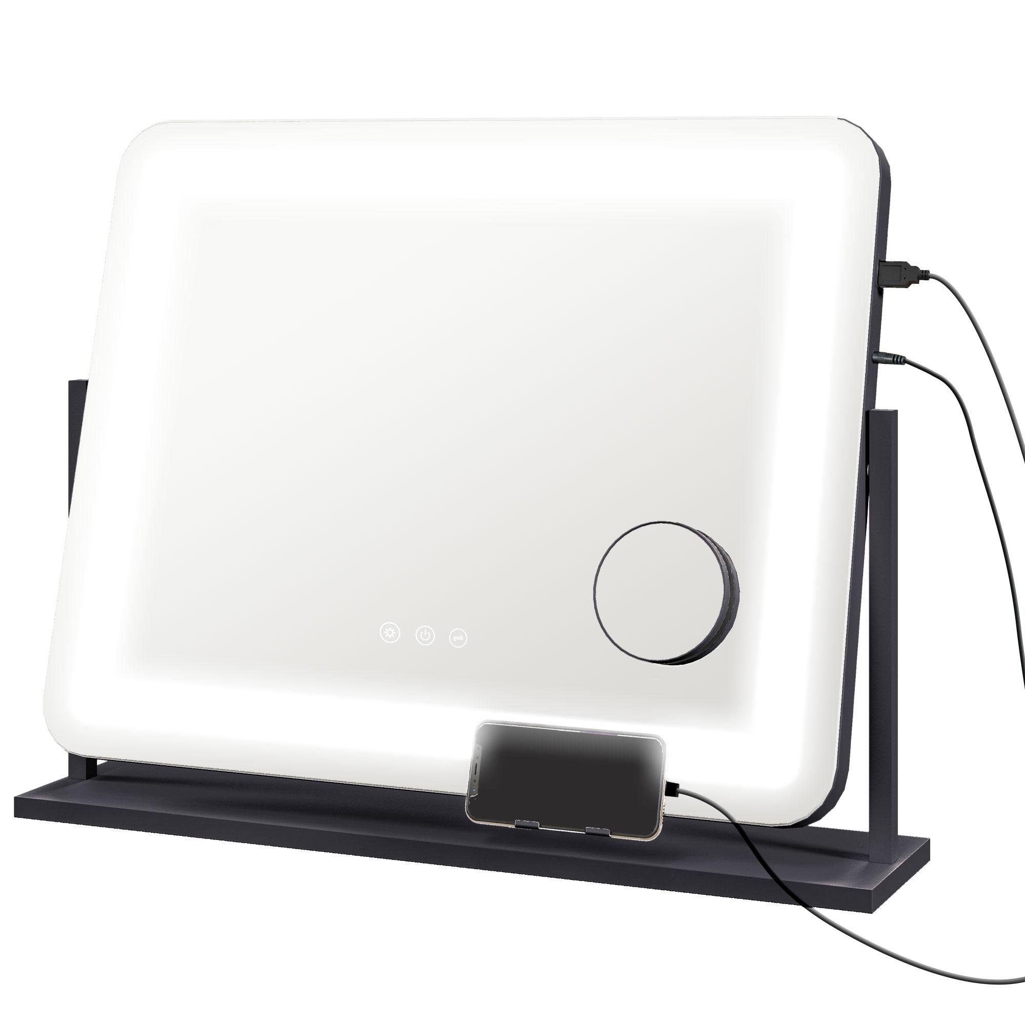 - Miroir de coiffeuse lumineux avec support pour téléphone et port USB pour plus de commodité