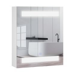 -Meuble 2 en 1 : miroir LED et armoire murale de salle de bain