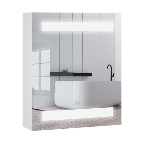 Miroir lumineux LED armoire murale design de salle de bain 2 en 1 dim. 50L x 15l x 60H cm MDF blanc