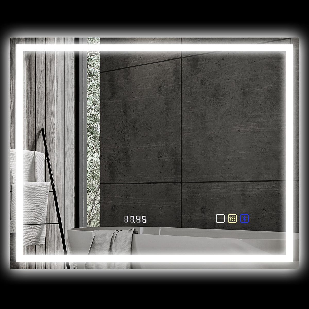 Miroir lumineux LED salle de bain 100 x 80 cm bluetooth interrupteur tactile lumière réglable 3 couleurs fonction anti-buée et mémoire