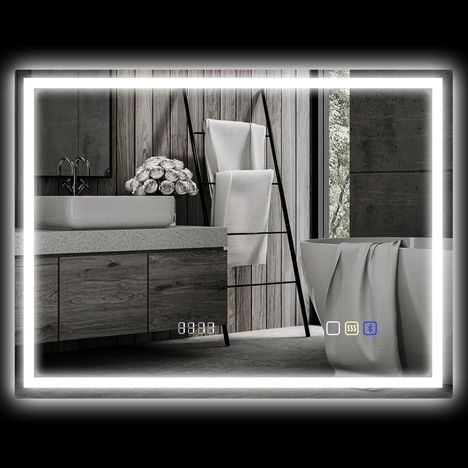 Miroir lumineux LED salle de bain 80 x 60 cm bluetooth interrupteur tactile lumière réglable 3 couleurs fonction anti-buée et mémoire