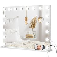Découvrez le miroir HOMCOM à LED, parfait pour toute coiffeuse. Avec 18 ampoules LED offrant 50 000 heures d'éclairage et un support pour téléphone, suivre les tutoriels de maquillage devient facile. Profitez des trois modes d'éclairage et de la luminosité réglable, tout en chargeant vos appareils g