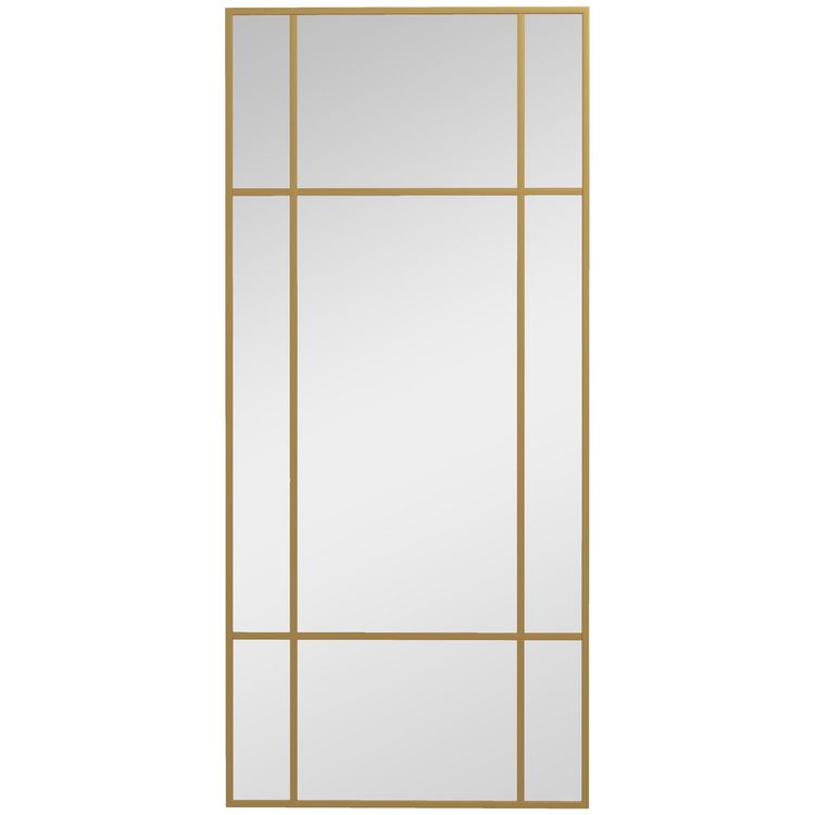 Miroir mural verrière rectangulaire - installation horizontal ou vertical - 4 crochets - dim. 110L x 50H cm - métal doré