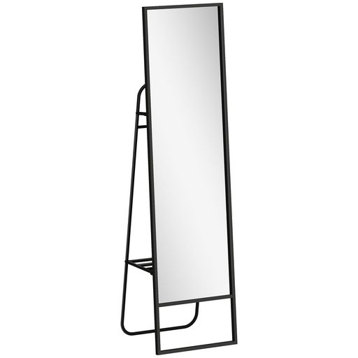 Découvrez votre tenue avec le grand miroir sur pied HOMCOM de 148,5 x 40 cm, offrant une vue HD limpide. Plus qu'un miroir, c'est un élément décoratif noir minimaliste avec étagère et crochets intégrés, idéal pour organiser vos essentiels. Sécurisé par un film incassable, il est parfait pour allier forme et fonctionnalité.