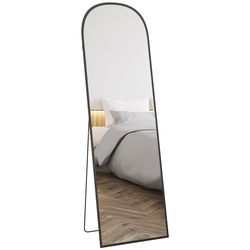 Miroir sur pied - miroir mural rectangulaire arrondi - dim. 50L x 161,5H cm - alu. noir
