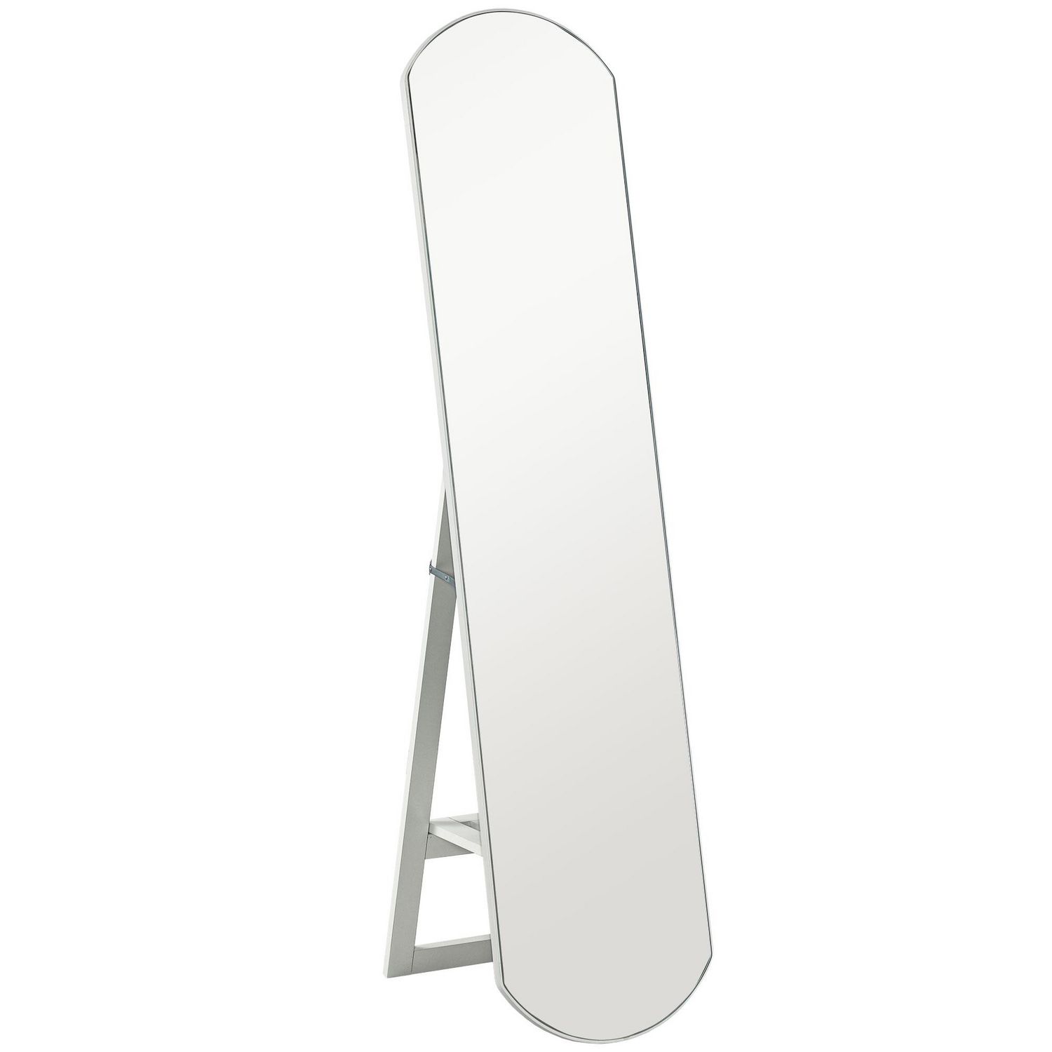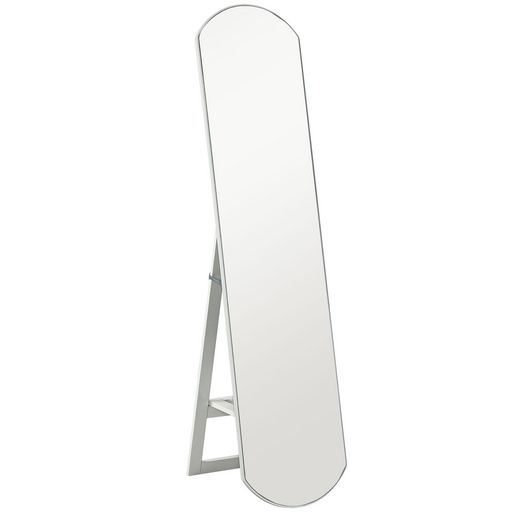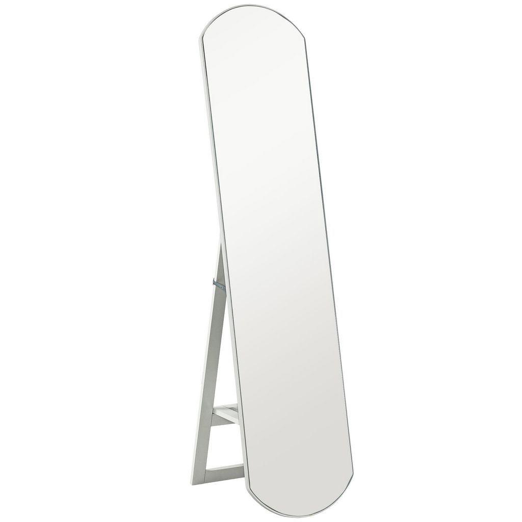 - Le design du cadre blanc du miroir sur pied complète une esthétique moderne