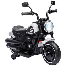 Moto électrique enfant 6 V 3 Km/h effet lumineux roulettes amovibles repose-pied pédale métal PP blanc noir