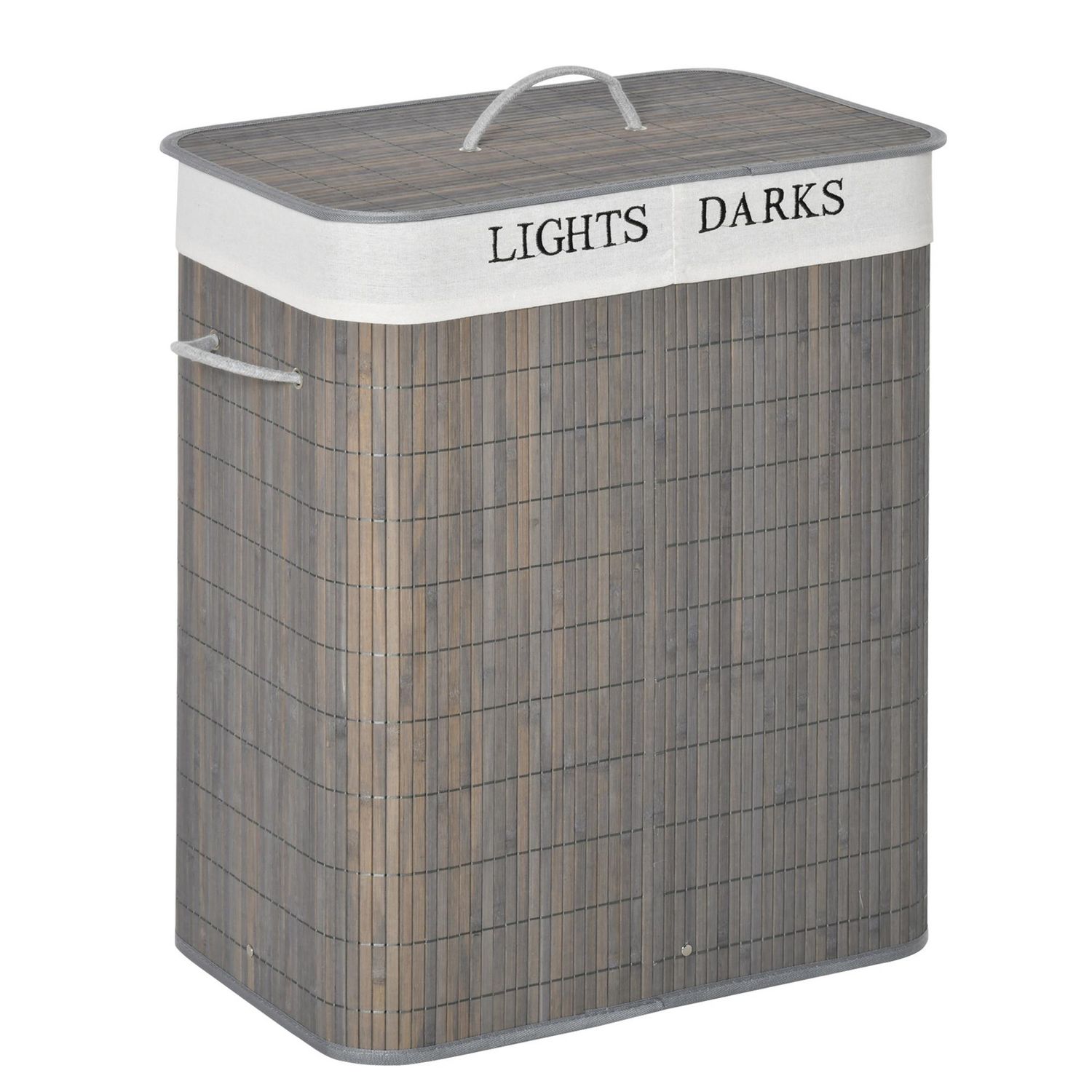 Panier à linge corbeille à linge 2 bacs bambou pliable couvercle poignée sac amovible en toile gris