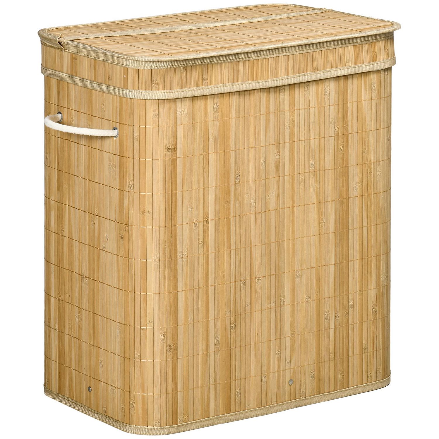 Panier à linge corbeille à linge bac à linge 100 L 2 compartiments couvercle sac amovible 2 poignées tissu bambou