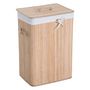 Panier à linge corbeille à linge bac à linge bambou pliable couvercle sac amovible 3 poignées PU 40L x 30l x 60H cm beige