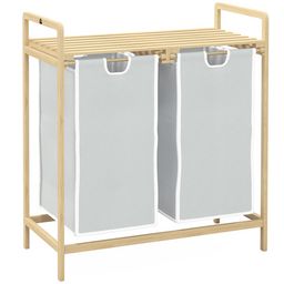 Panier à linge corbeille à linge bambou 2 paniers amovibles crème