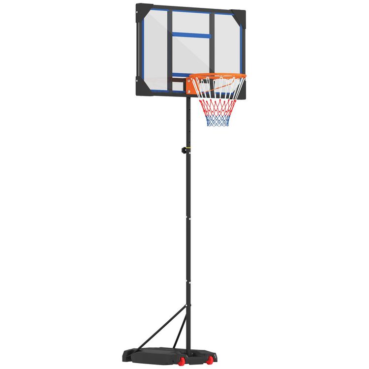 Panier de basketball sur pied - hauteur réglable 210-260 cm - base de lestage 2 roulettes - acier PVC bleu noir
