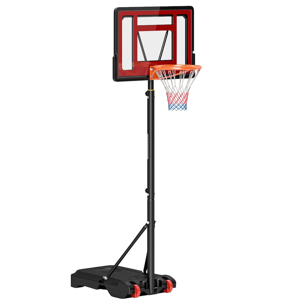 Panier de basketball sur pied hauteur réglable H.160–210 cm lestage roulettes noir rouge