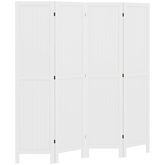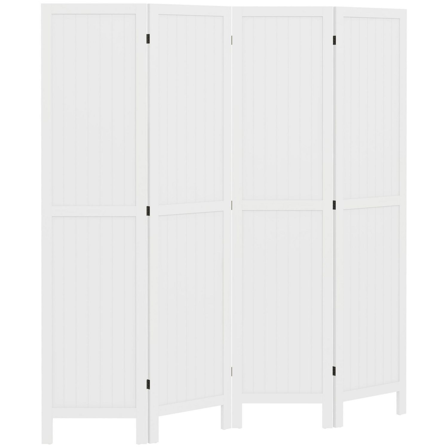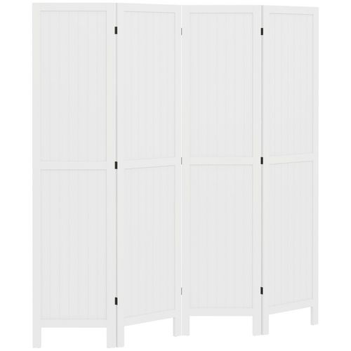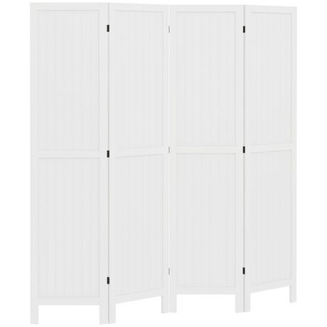 - Séparateur de pièce 4 panneaux style rustique chic avec panneaux rainurés à la verticale en bois de paulownia blanc