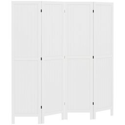 Paravent intérieur 4 panneaux style rustique chic - séparateur de pièce avec rainures verticales - bois de paulownia blanc